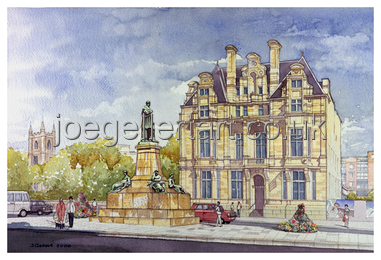 1877 by M P Manning. The flamboyant roofscape features prominent slender chimneys,