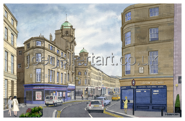 coloured, Northern Goldsmiths clock adds to the prominence of the corner turret.
